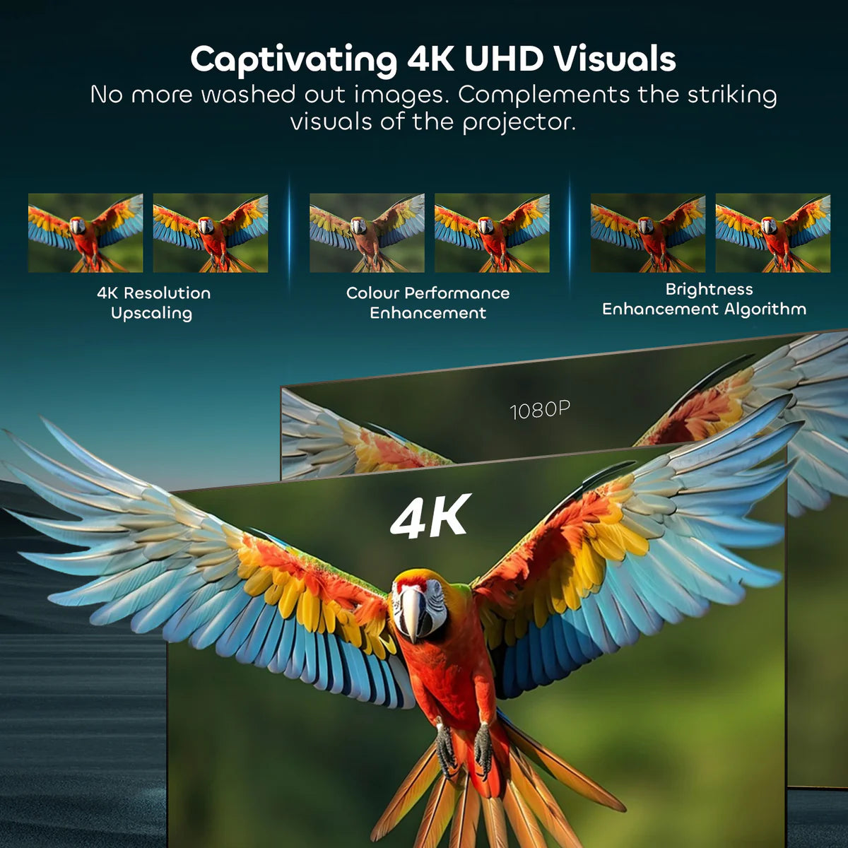 Ekran został zaprojektowany z myślą o projektorach ultra krótkiego rzutu, które umieszcza się bezpośrednio pod ekranem. Specjalny kąt odbicia i struktura powierzchni maksymalizują wydajność projektorów UST, zapewniając: