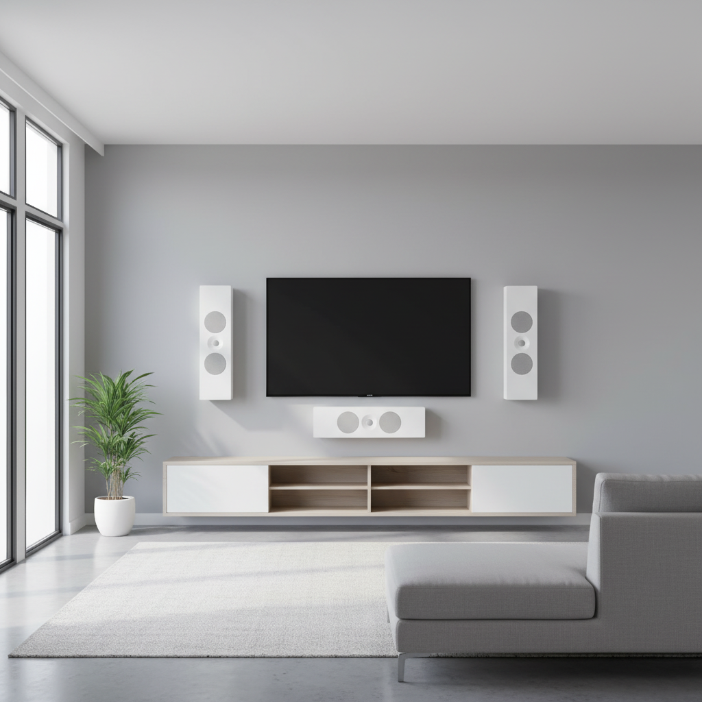 W bardziej zaawansowanych konfiguracjach trzy głośniki XLCR (lewy, centralny i prawy) tworzą frontowy system o wyjątkowej precyzji i równowadze, idealnie łącząc dialogi, muzykę i efekty w spójną całość.